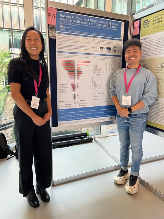 Michelle Chou presented her joint work with Sim Ray Yue from the ALLPreT consortium in a poster on the ranking of plant-derived components for reference proteins to be used in allergenicity assessment tools for novel foods. Mirte Florie gave an oral presentation on her studies exploring the allergic consumers’ perspective on precautionary allergen labelling (PAL) and the reporting of allergic reactions. In addition, she presented two posters: one focusing on the consumers’ perspective on post-market monitoring (PMM), and another on the food business operators’ perspective.